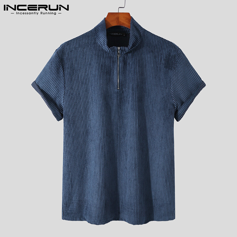 Beehoo INCERUN Mens Short Sleeve Zip Up Sets Shorts Suits Fit Sleepwear Underwear(Western Style)